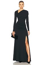 AREA Draped Long Sleeve Gown in Black
