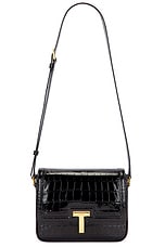 TOM FORD Wallis Stamped Croc Small Shoulder Bag in Black