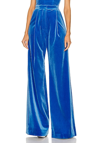 Alex Perry Velvet Arden Wide Leg Pant in Blue