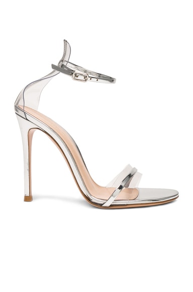 Gianvito Rossi Leather Plexi G-String Heels in Metal Silver & Transparent