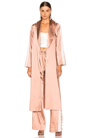 SIMKHAI Crepe Satin Combo Robe in Pink Sand & Nude