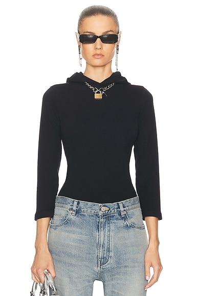 Balenciaga L/S Hooded T-Shirt in Washed Black