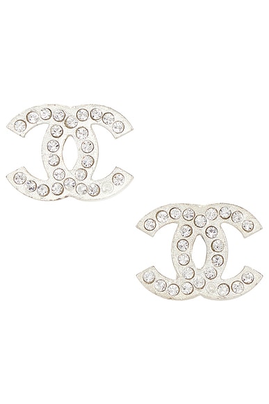 FWRD Renew Chanel CC Pearl Clip-On Earrings in Silver