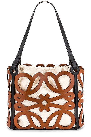 Loewe Anagram Cut Out Tote Small Bag in Tan