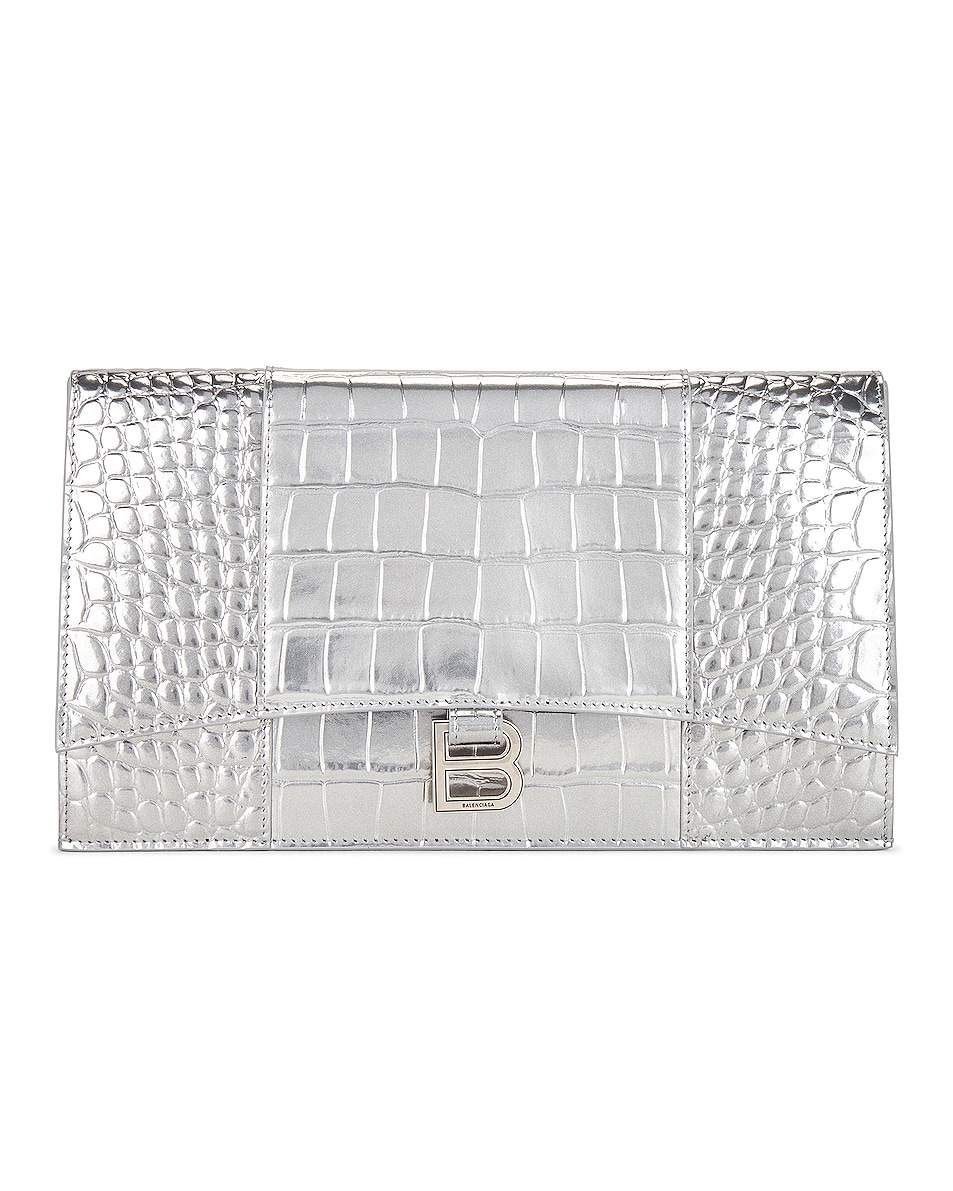 Image 1 of Balenciaga Hourglass Flat Pouch in Silver