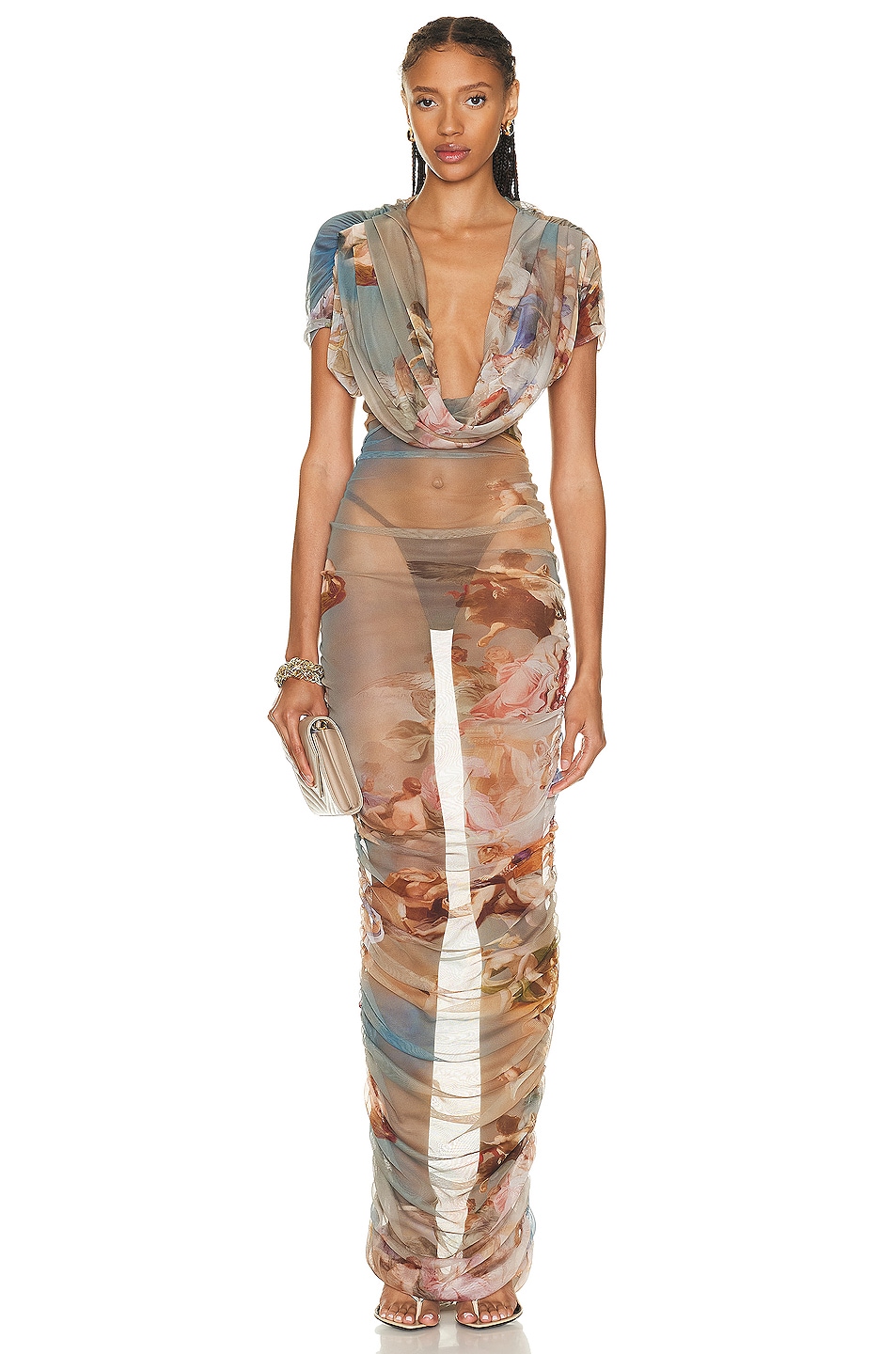 V-neck Sky Printed Tulle Long Dress