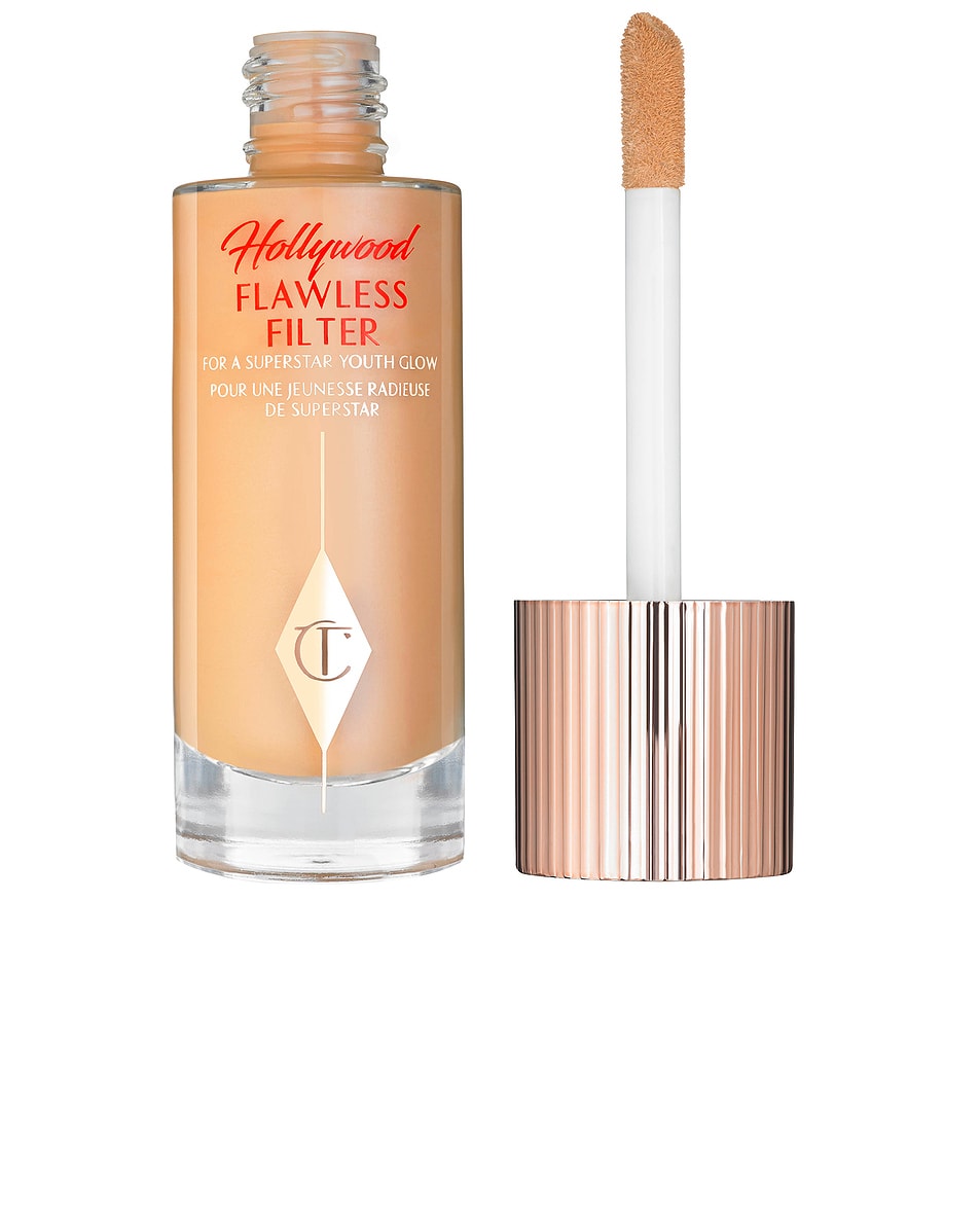 Hollywood Filter is a complexion booster that blurs, smooths, and illuminates for a real-life filter effect. Inspired by social media filters, Charlotte created this to be a confidence glow filter. It can be used as a tinted primer, under foundation, mixed with foundation, or as a highlighter on high points of the face. The light-as-air formula moisturizes for up to 24 hours while smoothing and visibly brightening skin for a radiant finish.