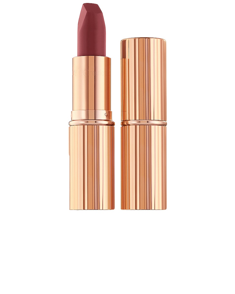 Create an irresistible pout with Charlotte Tilbury's award-winning Matte Revolution Lipstick. The lipstick features 3D glow pigments that help lips appear wider and fuller with a long-lasting, buildable, and hydrating formula. The matte formula is enriched with Charlotte's secret ingredient and Orchid Extract to protect and soothe lips for a cashmere finish. The unique, square-angled tip mimics the shape of a lip brush for a precise application. This lipstick comes in a range of 12 shades, including the bestselling Pillow Talk, giving every woman the choice of a perfect nude or pop of color.