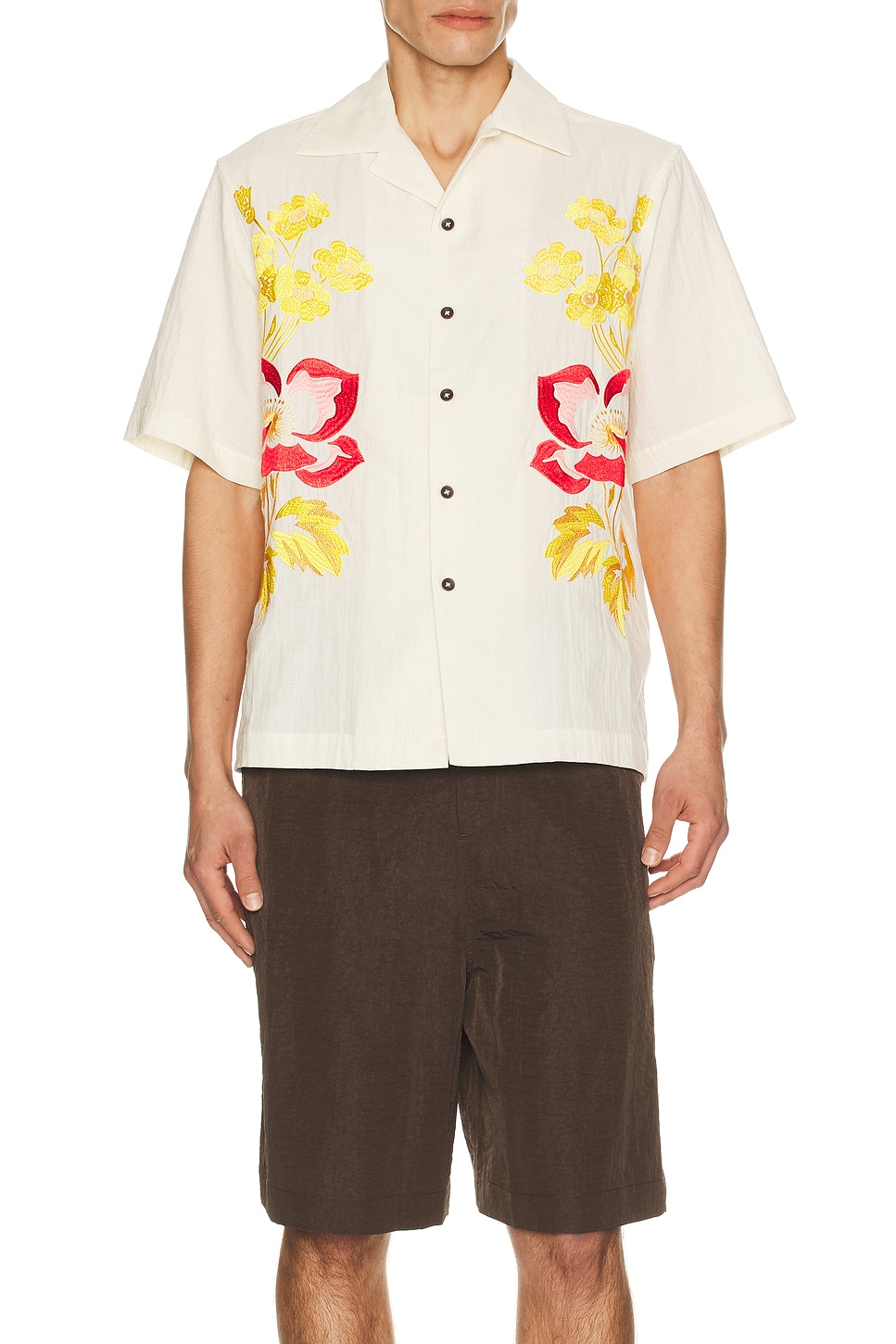 Embroidered Peonies Bowling Shirt
