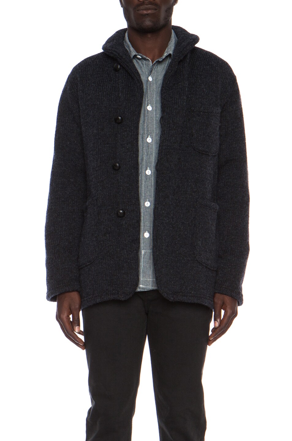 Image 6 of Engineered Garments Shawl Collar Knit Wool-Blend Jacket in Dark Navy in Dk. Navy