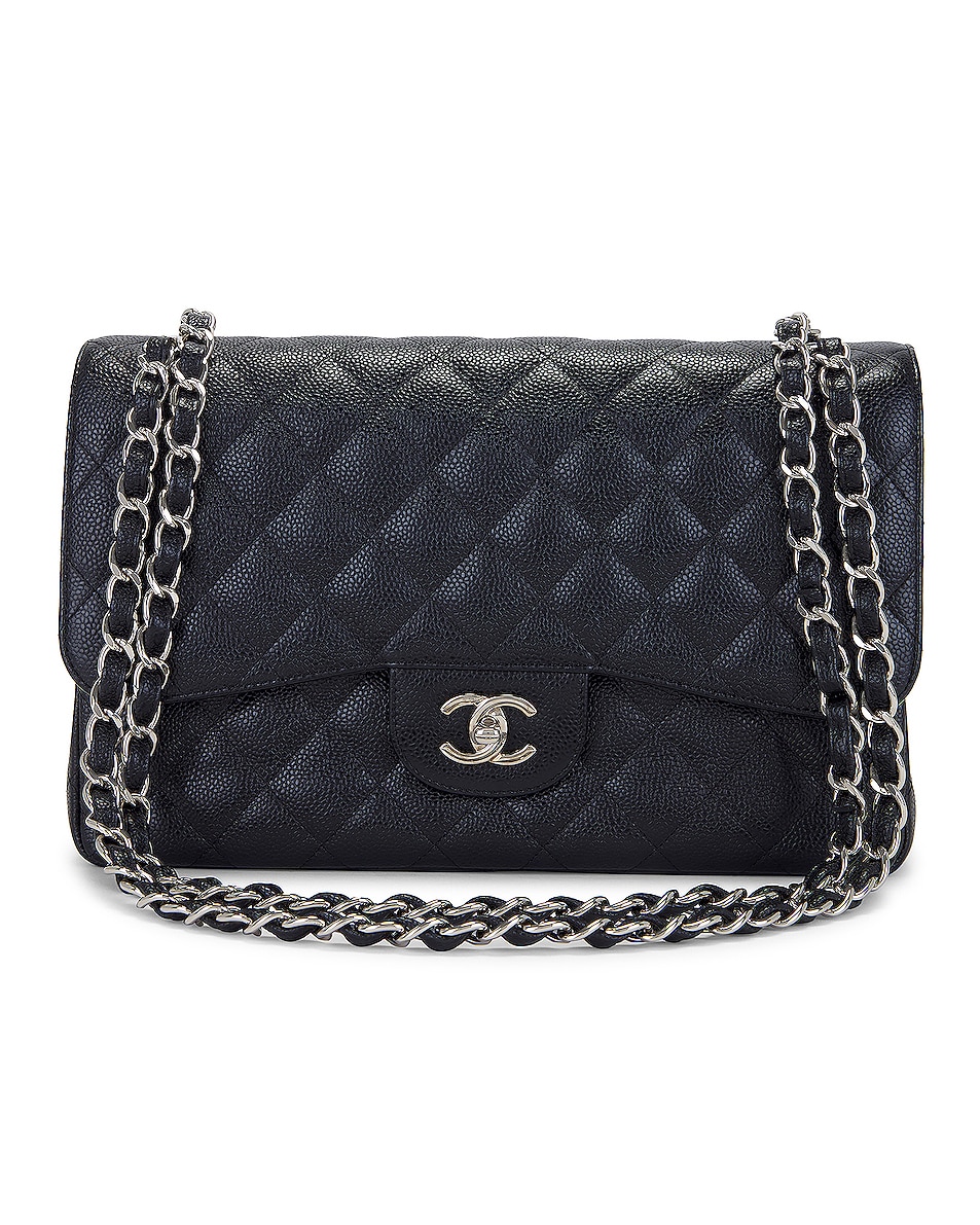 Image 1 of FWRD Renew Chanel Jumbo Quilted Caviar Double Flap Shoulder Bag in Black