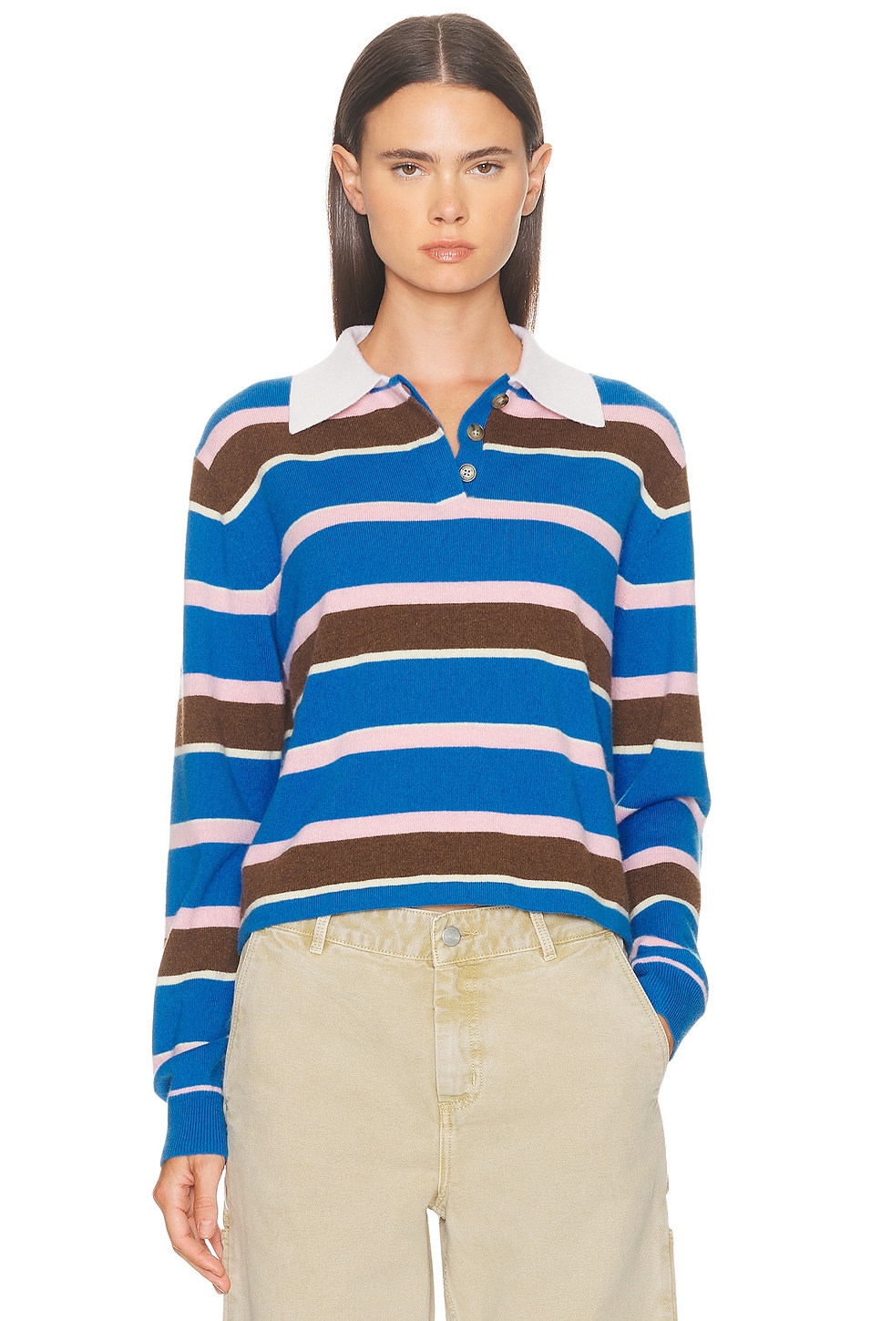 Cropped Stripe Rugby Polo Top