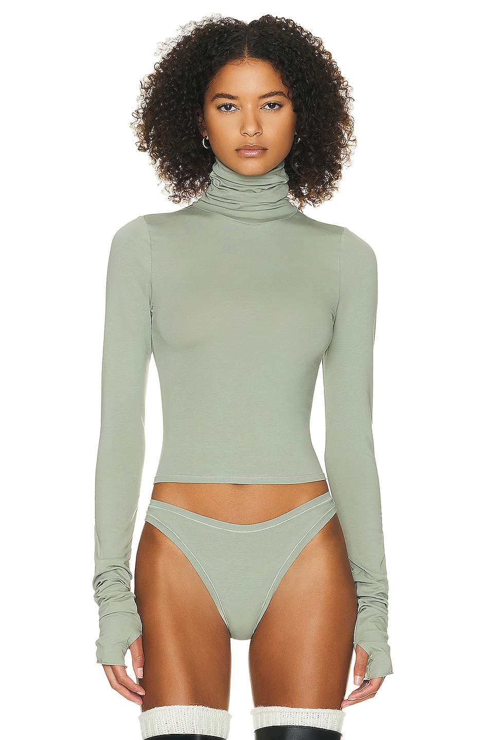 Image 3 of Helsa Jersey Long Sleeve Turtleneck in Sage