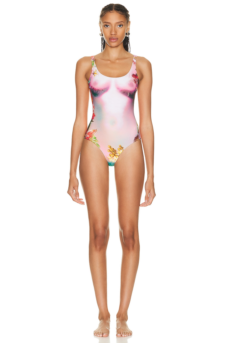 Image 1 of Jean Paul Gaultier Printed Body Flowers Swimsuit in Pink & Yellow