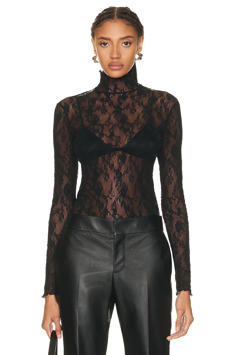Image 1 of Wolford Floral Lace Mock Neck Long Sleeve Top in Black