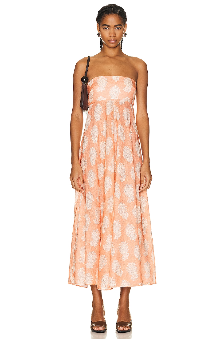 Image 1 of Zimmermann Devi Bandeau Midi Dress in Coral Paisley