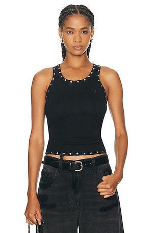 Studded Logo Tank Top in Black