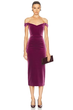 Draped Velvet Midi Dress in Purple