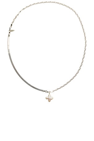 High On Hope Alta Pearl Cross Necklace in Metallic Silver