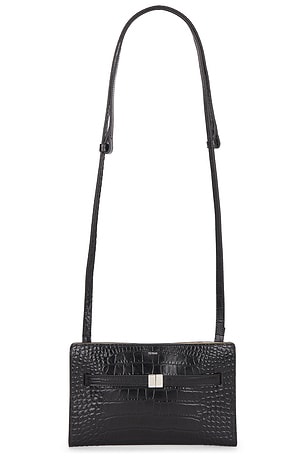 Belted Croco Embossed Crossbody Bag in Black